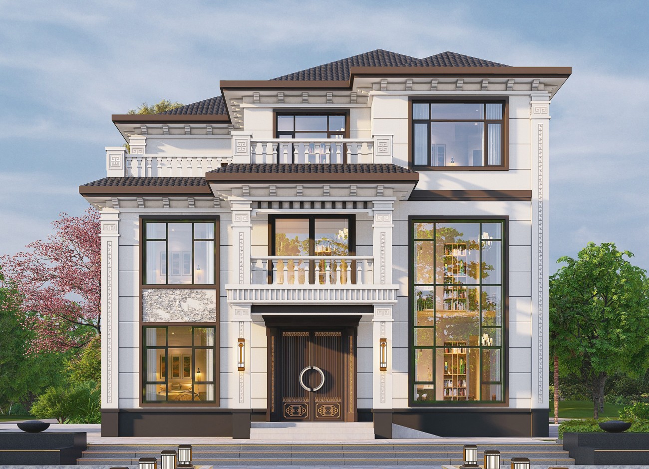 石渠18 三层新中式(13.62x13.6米)-【易设计】